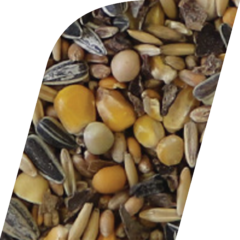 Corn, protein peas, wheat, oats, sunflower seeds, carob.