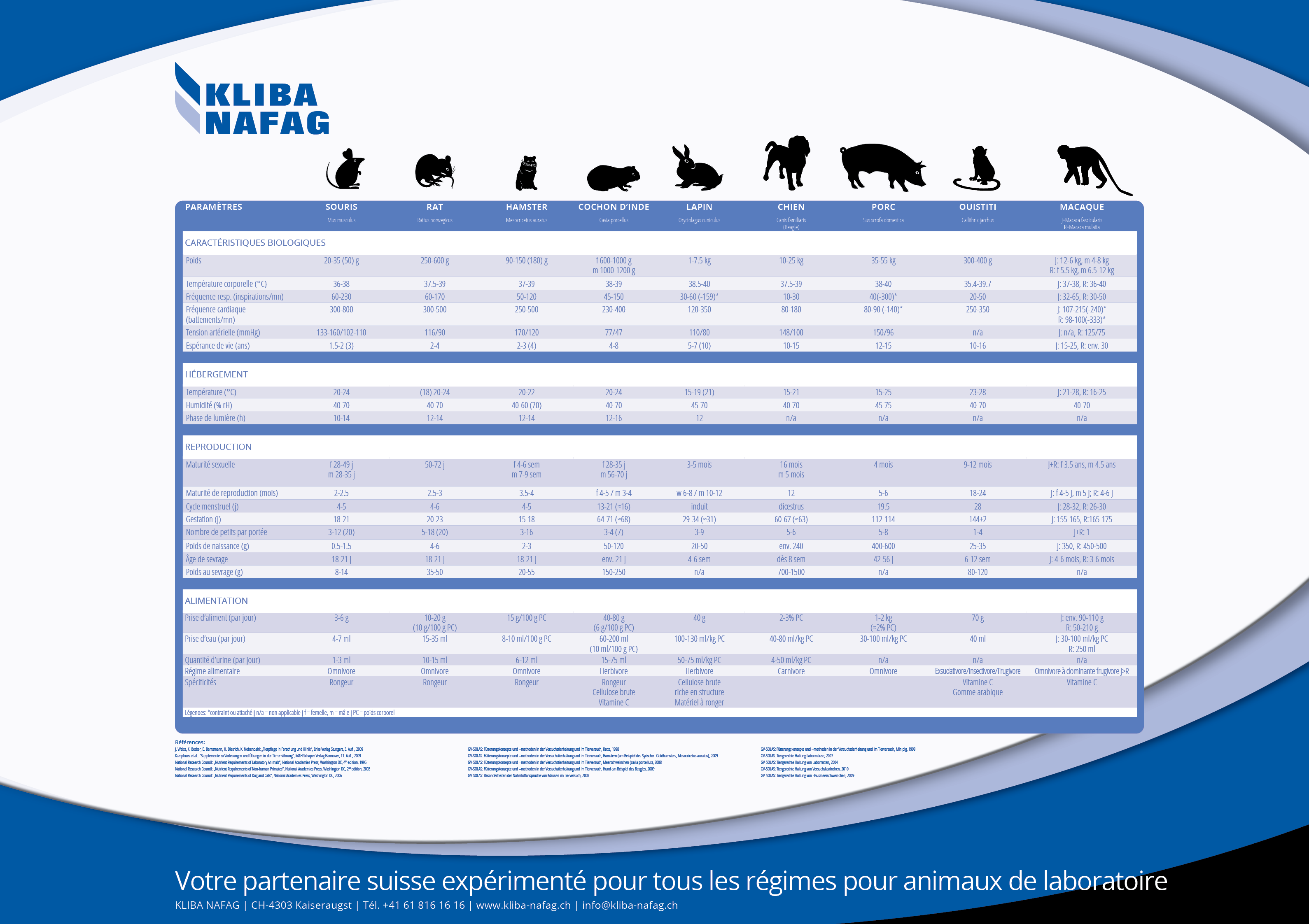 Vous trouverez ci-dessous des informations biologiques importantes pour la garde des principaux animaux de laboratoire.